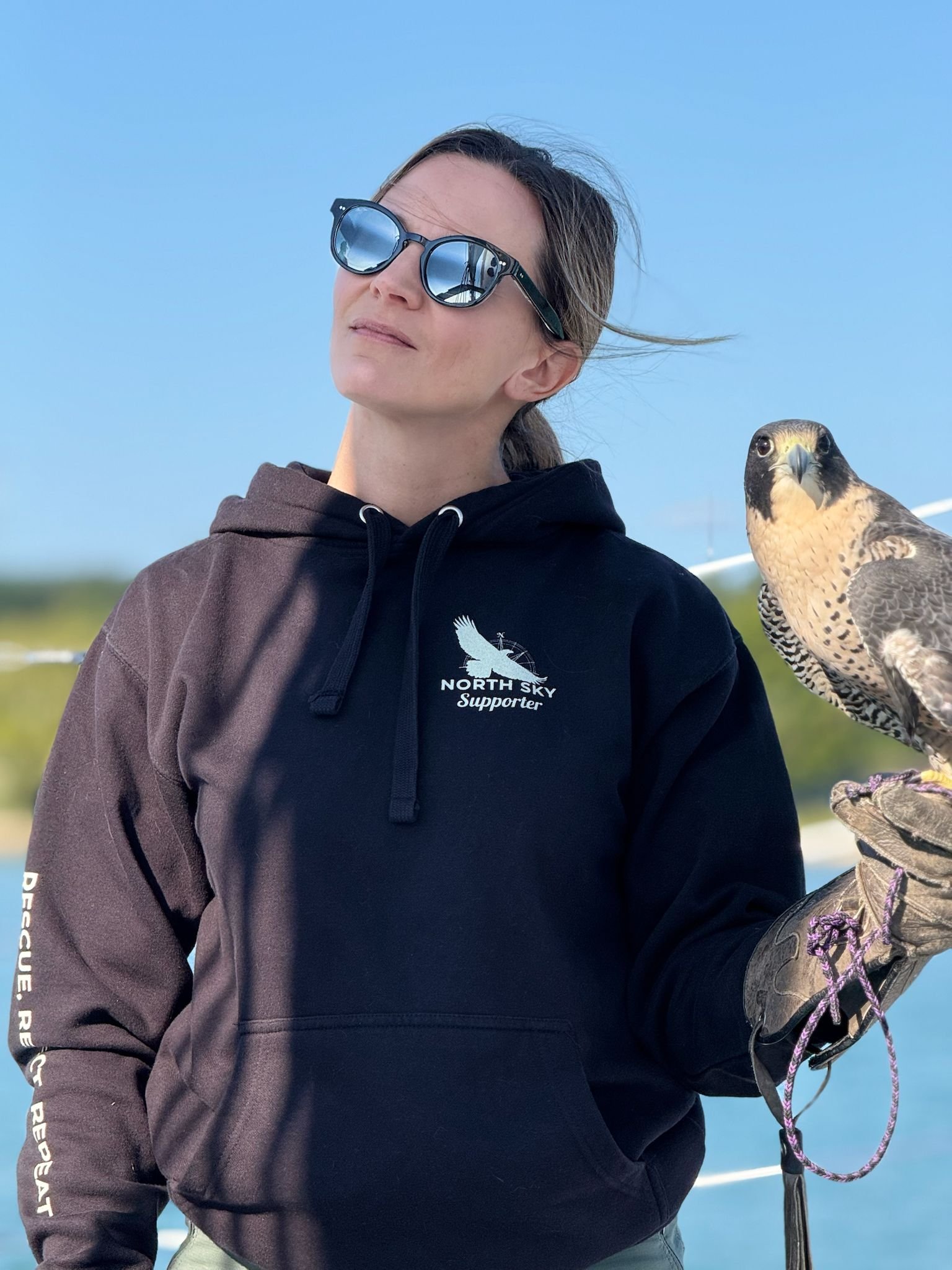 Emily owns a farm in North Branch, Mi and serves as the graphic designer, artist, merchandiser, and professional hype woman for North Sky Raptor Sanctuary.